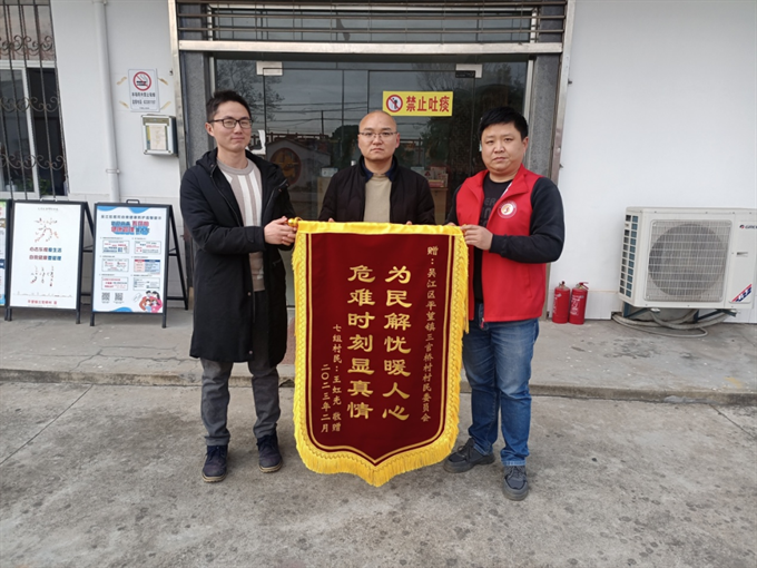 “我是来给你们送锦旗的,要是没有你们及时伸出援手扑灭火情,后果不堪设想!近日,平望镇三官桥村村民王虹光带着一份特殊的“礼物”来到村委会,把印有“为民解忧暖人心,危难时刻显真情”字样的锦旗交到了三官桥村党总支副书记、退役军人朱伟手里,并连声道谢。