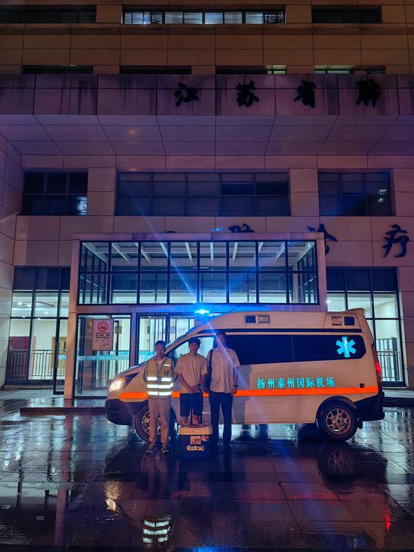 机场救护车辆赶赴无锡市人民医院。扬泰机场供图