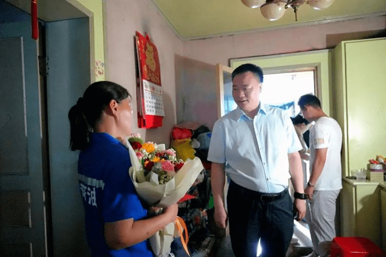 在区消防救援大队,王鹏宇向消防救援官兵送上鲜花和节日问候,感谢他们为七都的平安稳定作出的贡献,以及对七都消防中队、庙港消防救援站建设给予的关心支持。