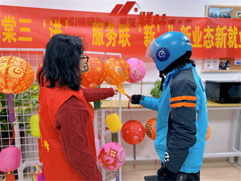 活动现场随着快递小哥和外卖小哥陆陆续续地加入变得热闹起来。结束了上午配送工作的小哥们来到焕然一新的党群服务中心,工作人员将一碗热气腾腾的汤圆送到小哥面前热情地打着招呼:“小哥您辛苦了,节日快乐,来一碗汤圆暖暖身吧。”当大家吃完好吃的汤圆后,工作人员向大家介绍道:“这边是灯谜区,猜中了会有纪念品赠送。”活动现场悬挂几十个喜庆的灯笼,灯笼下面挂着是以党史、党章等内容作为谜底谜面的灯谜。大家纷纷开动脑筋,有的猜出谜底喜不自禁,也有的因久久想不出谜底而冥思苦想,场面甚是喜庆祥和,热闹非凡。