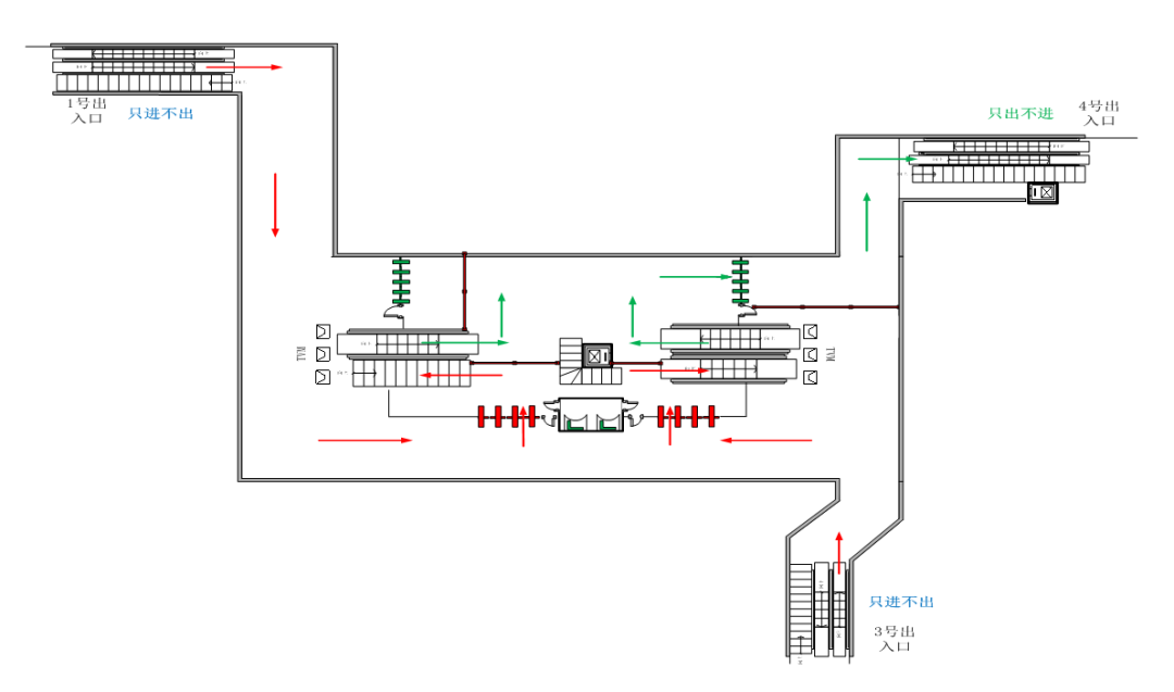 苏州奥体中心站视当天进站客流情况对2号口通道执行只进不出,现场通过设置客流限制栏杆、伸缩栏杆进行限流。1、3、6、7出入口正常进出不作管控。