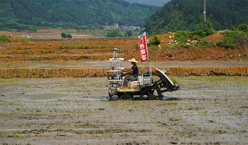 新华网南宁4月29日电(袁喆 汤静怡)一年之计在于春,春耕春种正当时。在广西金秀瑶族自治县三江乡的田野间,挖掘机平整土地,旋耕机翻动泥土,无人机播洒肥料,插秧机将秧苗整齐地插播在田里……田间地头奏响春耕春种乐章。
