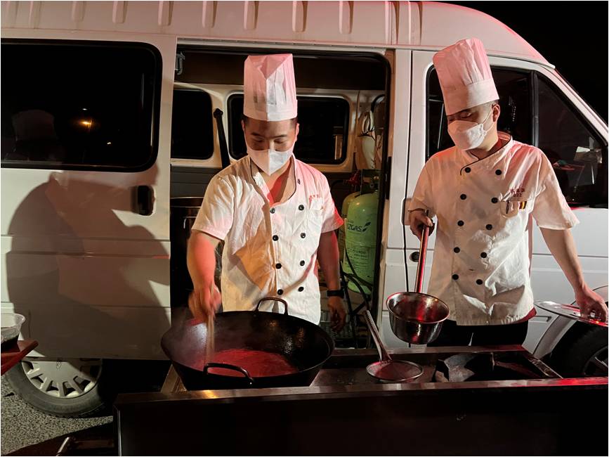 每天晚上8点,顾建国与员工开始炒制晚上的浇头,10点带着便携炉灶和备好的高汤到达查验点为工作人员煮面,一直到12点才收摊回家。