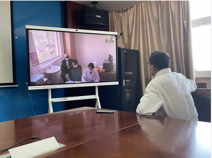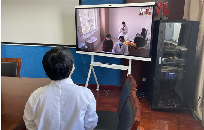 患者茅奶奶,自述新冠后口苦多汗、睡眠差,两月前行输液和中药治疗后稍有好转,但是停药后症状反复。此次希望能够得到漕湖人民医院中医科主任郑文艳的诊治意见。郑文艳通过视频对茅奶奶进行了“望诊”,对舌苔进行了观察,结合“问诊”,还有患者的相关检查报告,给予茅奶奶中医治疗意见。茅奶奶会诊后非常开心,希望通过这样简便的会诊早日摆脱疾病的痛苦。
