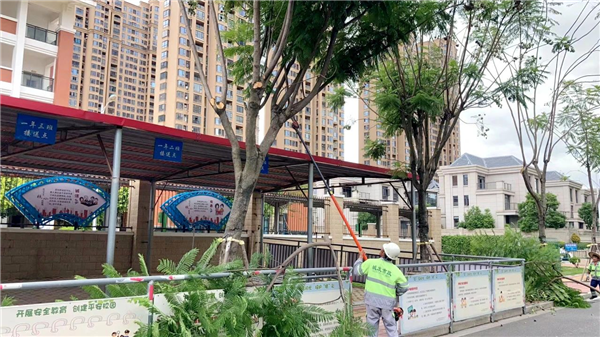 此外,在仁和南路东山小学门口,市政工人对每棵树木进行巡检,在巡查中发现部分行道树的枝叶长势过长,容易在大风雨中造成树木倒伏,市政工人立即围蔽树木,对枝叶进行适当修剪。据了解,连日来,台商区建设局党员干部市政领域小分队排查道路绿化带45条,公园绿地3处;排查树木约树木20806株,截至目前已支撑加固树木1800株,修剪行道树约400棵,清理断枝150处,行道树扶正4处。同时,台商区在建工地较多,建设局组织党员干部牵头成立5个小组24名工作人员对全区82个在建项目持续开展拉网式巡查,目前在建项目均已停工,现场共撤离、安置人员1333人。”区建设局相关负责人告诉笔者,“我局还调配在建工地配备30台抽水泵用作应急抢险救援备用。”(作者:陈福升)