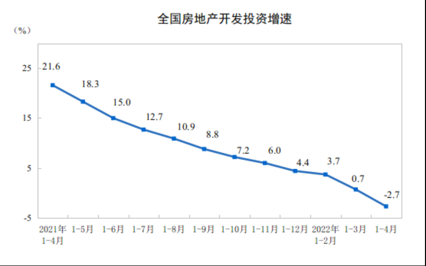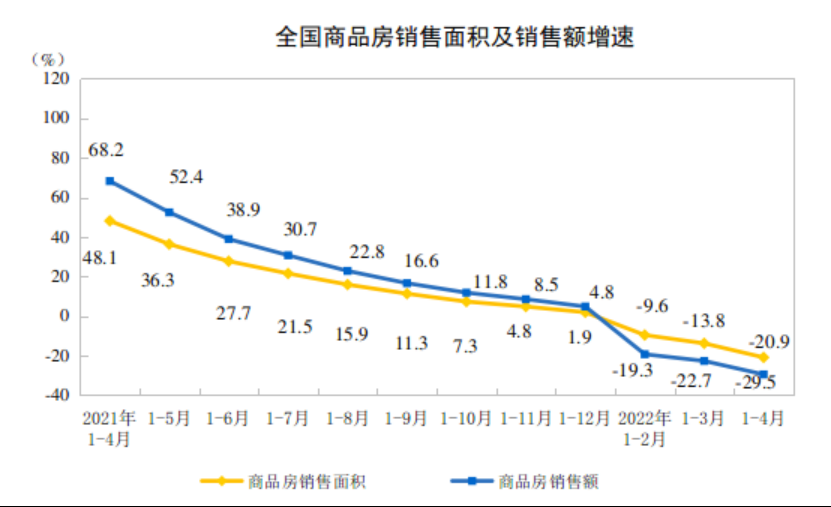 5月16日,国家统计局发布了2022年1-4月房地产开发和销售情况统计报告。