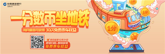 “一分数币坐地铁”活动是建行苏州分行推出的数字人民币绿色出行优惠活动,即日起至今年12月31日,客户通过建设银行手机银行,使用建行数字人民币个人钱包支付一分钱,即可抽取最高30次的苏州轨道交通出行权益,最低也可抽到2次出行权益。