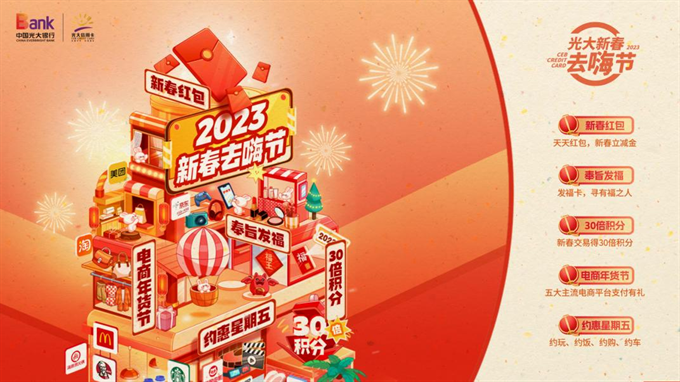 1月13日,中国光大银行苏州分行围绕总行“新春去嗨节”主题打造的信用卡客户专属优惠活动全新上线啦!本轮活动主要包括商超购物的“约购”和畅享美食的“约饭”两大板块,当日上线合作门店2488家,活动上线两小时内发放权益1667份,为一周后的春节添上浓浓的“年味儿”!