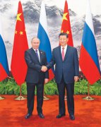 5月16日上午,国家主席习近平在北京人民大会堂同来华进行国事访问的俄罗斯总统普京举行会谈。这是习近平同普京握手。 新华社记者 鞠 鹏摄 5月16日上午,国家主席习近平在北京人民大会堂同来华进行国事访问的俄罗斯总统普京举行会谈。这是会谈前,习近平在人...