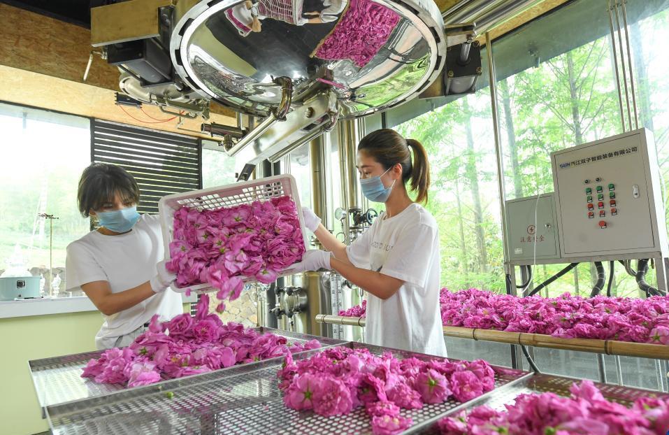 4月20日,参加香氛疗愈课程的体验者用玫瑰花汤净手。 近日,位于浙江省湖州市埭溪镇莫家栅村的玫瑰庄园迎来丰收季。2017年,埭溪镇将一片闲置集体土地交由企业经营,打造了占地600亩的玫瑰庄园。玫瑰种植、民宿和香氛疗愈等各种业态在这里蓬勃发展,为当地乡...