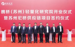 近日,魏桥(苏州)轻量化研究院开业仪式暨苏州宏桥供应链项目签约仪式举行。山东魏桥创业集团有限公司董事长张波,山东创新集团有限公司董事长崔立新,魏桥(苏州)轻量化研究院院长张海,山东宏奥汽车轻量化科技有限公司、苏州奥杰汽车技术股份有限公司董...