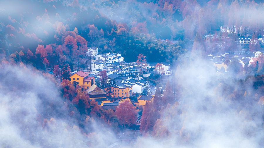 当落叶随风起舞时,九华山的一切就变得多彩和丰盈。秋日金色的阳光在树梢上洒下点点光芒,照进那条蜿蜒的山路,让人多了些宁静。 在这个季节,看见更多大自然的色彩,天空蓝得深邃,白云有了清闲;但是,九华山漫上云雾的时候,你便知道含蓄的美,才是真的美...