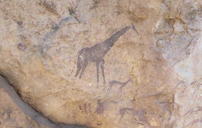 这是5月3日在博茨瓦纳图利自然保护区内拍摄的莫哈巴能岩画遗址全景。 在南部非洲国家博茨瓦纳最东端的图利自然保护区,有20多处土著桑人留下的岩画,距今已有1800多年,成为当地著名的人文景观。这些岩画多为动物,有长颈鹿、大象、羚羊、狒狒、豺狼、食蚁兽...