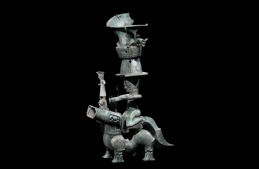 记者2日从四川省文物考古研究院获悉,考古学家利用数字三维模型实现了三星堆3号祭祀坑铜顶尊跪坐人像与8号祭祀坑神兽的成功拼对。新华社发(四川省文物考古研究院供图)...