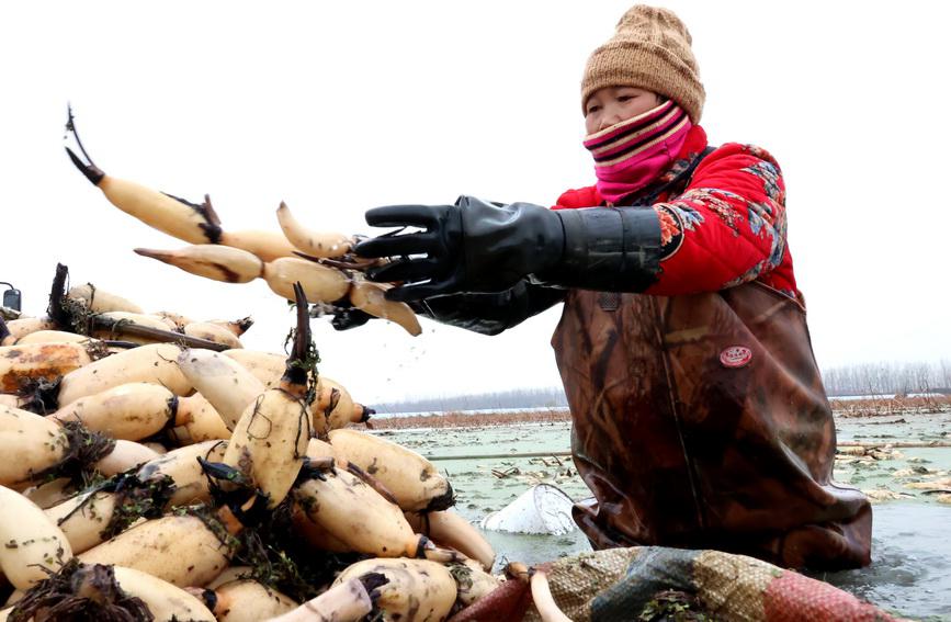 冬日时节,江苏省连云港市东海县张湾乡无公害浅水藕喜获丰收,村民们加紧采收保障供应市? =昀矗O爻浞忠劳械钡厮试从攀疲罅Ψ⒄沽壕茫绱逡淮逡黄诽厣捣⒄梗ο绱逭裥恕9⒂窈蜕悖ㄈ嗣裢计?...