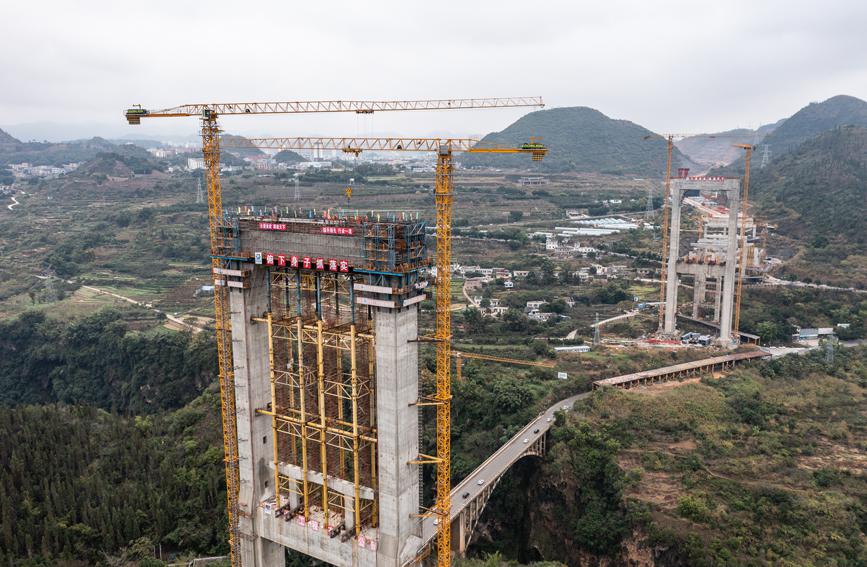 12月4日,贵州公路集团第六工程公司的工人在金州大桥22号主塔横梁上进行施工。 当日,随着最后一方混凝土被浇筑至22号主塔横梁,由贵州公路集团承建的金州大桥顺利完成全部主墩封顶。金州大桥是连接贵州省黔西南州兴义市和义龙新区的快速通道,全长1600米,...