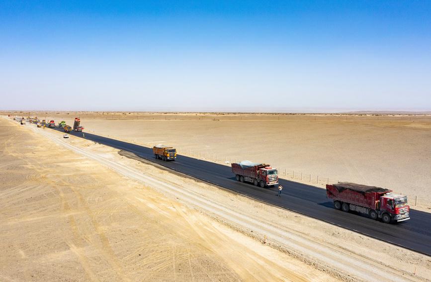 2022年8月9日,新疆哈密市伊吾县淖毛湖区域,G331线红岭至淖毛湖镇公路项目建设现场,摊铺机、压路机等大型机械设备正忙碌作业,建设者顶着高温,坚守在自己的岗位上加快工程建设,确保项目按期建成通车。 国道G331线起点位于辽宁丹东,终点位于新疆阿勒泰,...