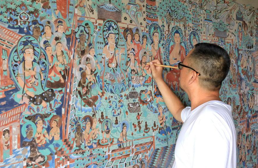 近年来,甘肃省敦煌市的艺术工作者积极传承敦煌彩塑制作技艺、敦煌石粉彩绘技艺、敦煌剪纸等非物质文化遗产代表性项目,弘扬非遗文化,展示敦煌艺术魅力。(作者:张晓亮)...