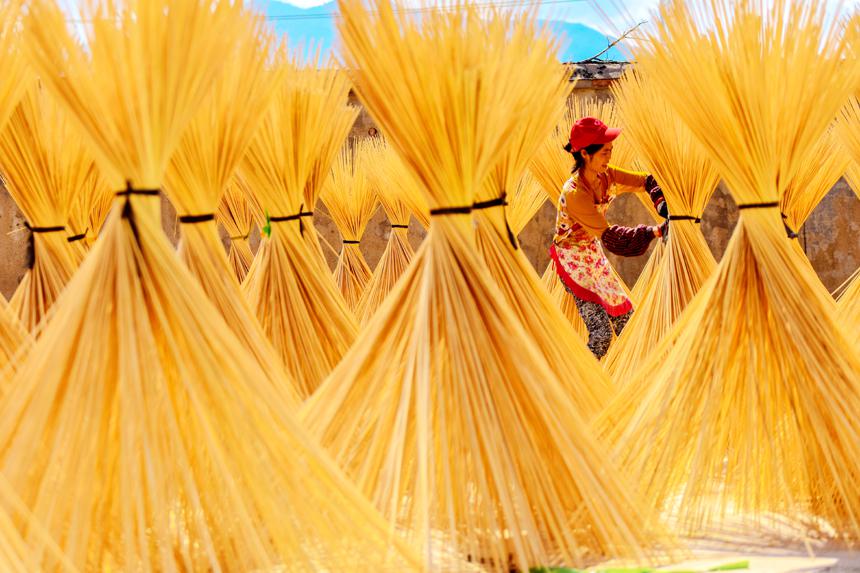 近日,江西省抚州市资溪县高阜镇溪南村脱贫户叶佳在镇竹制品厂晾晒竹制品。该镇利用丰富的毛竹资源优势,大力推进竹产业集群发展和毛竹精深加工,助推全镇脱贫户和周边农民在家门口就业增收致富。(作者:邱烨、吴志贵)...