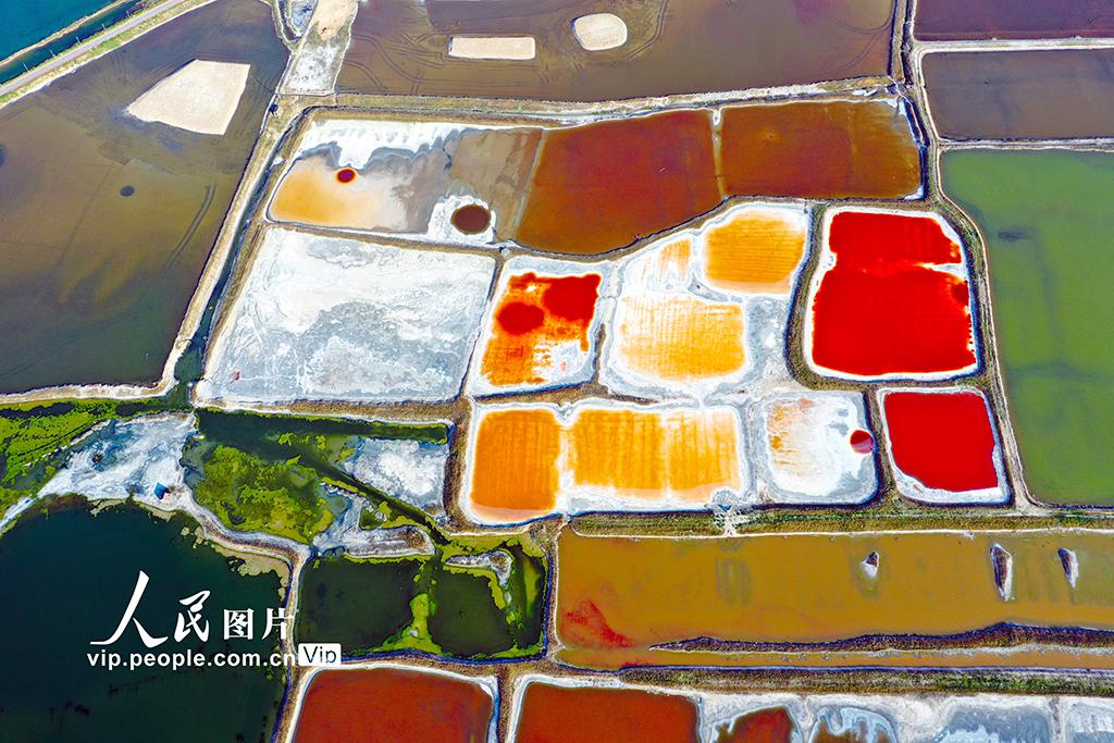 2024年5月22日,从空中俯瞰山西省运城市七彩盐湖犹如大自然的调色盘,色彩斑斓,美不胜收。郝健摄(人民图片网)...
