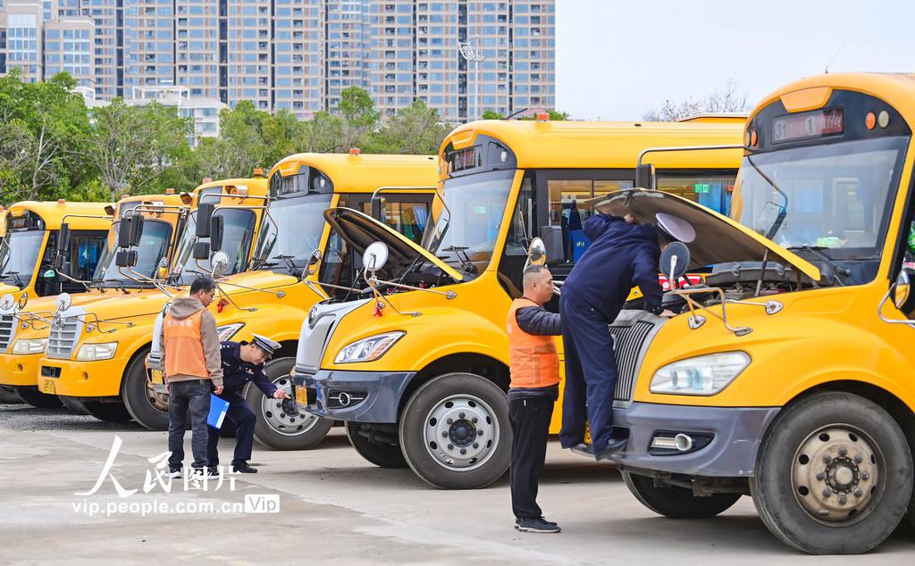 2月27日,新疆乌鲁木齐市公安局交通管理支队水磨沟区大队民警(右)在检查校车外观。 新学期开学临近,各地积极做好各项准备工作。 新华社记者 王菲 摄 2月27日,新疆乌鲁木齐市公安局交通管理支队水磨沟区大队民警(左)在检查校车灭火器。 新学期开学临近...