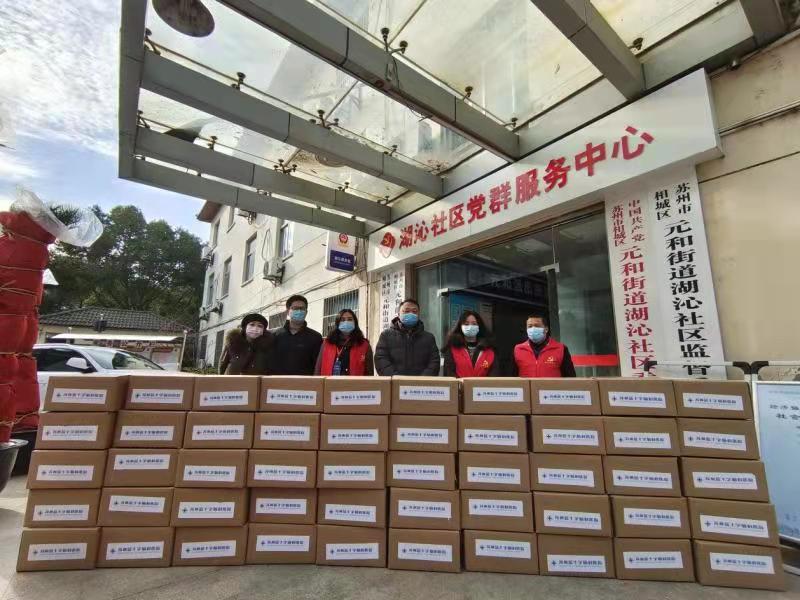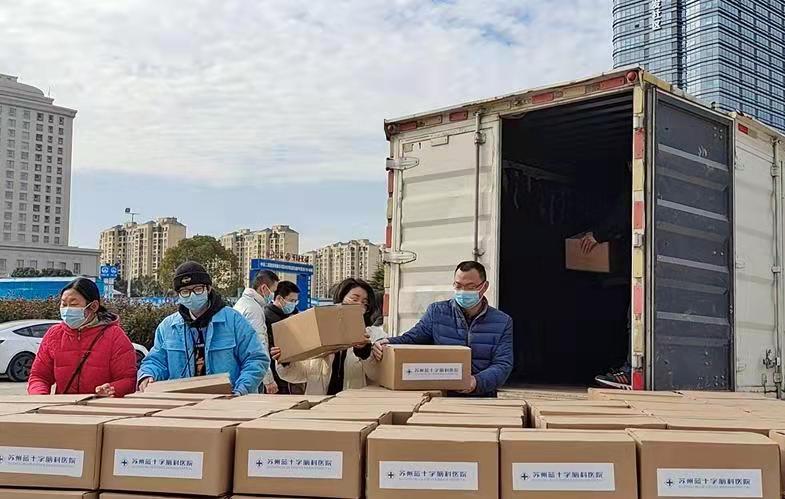 2月20日,苏州蓝十字脑科医院向所在地相城区的六个社区捐赠生活物资300箱,慰问抗疫一线医护人员。