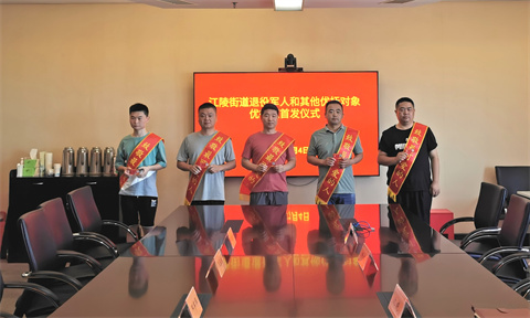 日前,江陵街道举行退役军人及其他优抚对象优待证首发仪式。江陵街道党工委委员、人武部部长沈晓,江陵街道社会事业和社会治理办公室主任田雄、中国邮政储蓄银行、农业银行、工商银行相关负责人参加。
