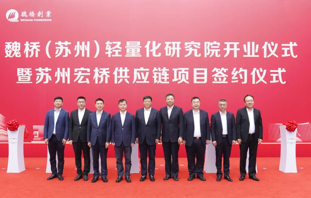 近日,魏桥(苏州)轻量化研究院开业仪式暨苏州宏桥供应链项目签约仪式举行。山东魏桥创业集团有限公司董事长张波,山东创新集团有限公司董事长崔立新,魏桥(苏州)轻量化研究院院长张海,山东宏奥汽车轻量化科技有限公司、苏州奥杰汽车技术股份有限公司董事长宿佳敏等企业家代表和研究机构负责人,相城区委书记沈志栋,区委副书记、区长张伟等区领导参加活动。