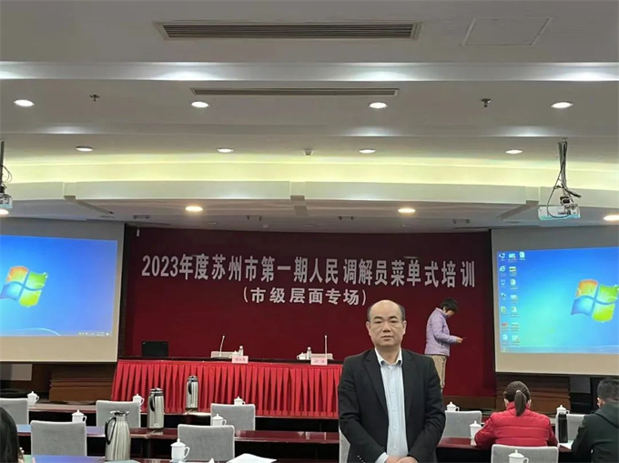 3月16日,苏州市司法局联合市工商联举行2023年度第一期专职人民调解员“菜单式”培训。商会常务副会长韩为国参加此次培训。