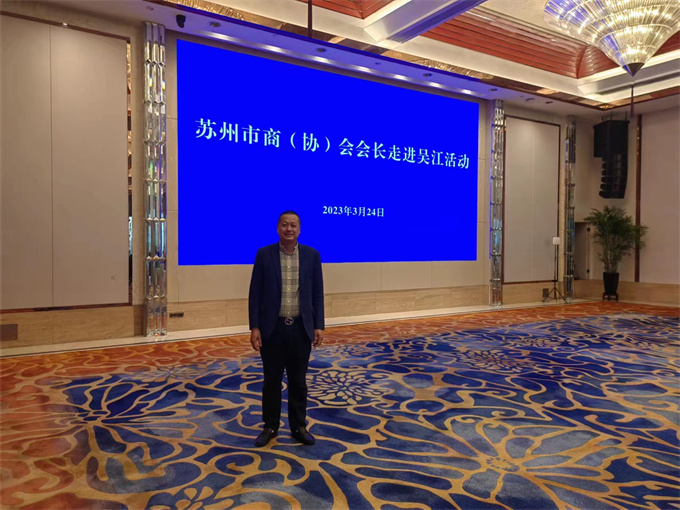 3月24日,苏州市民营企业家代表和商(协)会会长一行多人来到吴江,近距离感受吴江、了解吴江,并召开座谈会。商会执行会长刘赐锋,副会长李英杰参加此次活动。