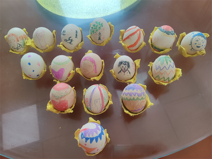活动现场,海棠先锋为大家讲解立夏吃蛋挂蛋习俗的由来。每逢立夏,苏州人都有用网袋给孩子脖子上挂个咸鸭蛋的习俗,用来“压邪”,鸭是“压”的谐音,咸鸭蛋就是“邪压蛋”。讲完习俗,手巧的党员迫不及待地拿起面前的材料编起了蛋兜。她们有的独自一人仔细琢磨,有的两个人互相配合,一根根彩线在指尖飞舞跳动,不一会儿,一个个五颜六色的蛋兜就呈现在了大家面前。不擅长手工活的阿姨们就在一旁你一言我一语地讲述自己小时候过立夏的趣事,欢声笑语一片,仿佛回到了童年快乐的时光。最后大家把画好的立夏彩蛋装网兜里一起合影留念记录这一美好时光。