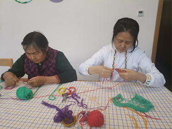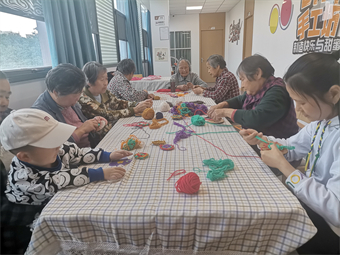 活动开始前,志愿者详细讲解材料包内每一个小零件的用处及编织方法,参加活动的居民热情高涨,认真听、仔细学。大家争先上手实践,一边编织一边互相交流心得,分享制作技巧。遇到困难大家互相交流,你教我,我帮你,活动现场充满欢乐喜悦的氛围。五彩毛线在大家手中来回穿梭,不一会,大家都用漂亮的五彩绳根据自己的喜好编织出自己心仪的作品,脸上都露出了成功的喜悦,迫不及待地拿起自己的作品展示拍照,纷纷表示很喜欢参加这样的活动。现场,有些居民虽是初次接触毛线编织,但在志愿者的细心指导下,他们也制作完成了属于自己的手工作品。