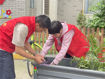 “海棠花正红 扮靓家门口”花箱补绿志愿服务活动