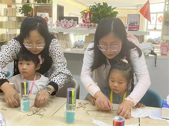 活动开始前,家长和孩子带着满满的期待早早来到东大书店,在书海里畅游,享受亲子阅读的欢乐时光。在开始动手做风筝之前,朱洁老师首先为学员们介绍了风筝的起源、用途及其演变等风筝相关的趣味知识,并品味了经典古诗《村居》(高鼎):“草长莺飞二月天,拂堤杨柳醉春烟。儿童散学归来早,忙趁东风放纸鸢。”这首诗语言古朴纯真,意境美好,读来朗朗上口,许多小朋友当场就会背诵了。随后,学员们先是跟随老师的步骤,开始组装风筝的骨架。做好骨架后,学员们又拿起画笔,准备为风筝“做”一身漂亮的衣服,他们发挥天马行空的想象力,一笔一笔地画,满是纯真与童趣。还有一些是全家齐上阵,进行愉快的亲子探索之旅,共享感动与快乐。
