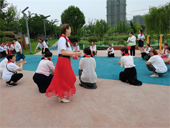 上午九点,老人们抑制不住激动的心情,早早来到活动现场。其中几位老人还扎着小辫,她们脸上洋溢着幸福的笑容,都想留下最美好的回忆。活动开始,日照中心志愿者帮大家重温了童年时期的“入队仪式”,在此环节中,老人们一起举起右手宣誓:我志愿加入少年先锋队队员!一声声坚定的誓言回荡在耳边,她们完全忘却了自已的年龄,一个个仿佛回到了童年,露出开心的笑容,绯红的脸颊难掩她们内心的激动。大家互相帮忙系上红领巾,欢乐的气氛很快氤氲开来。洪阿姨一边帮陈奶奶佩戴红领巾.一边说:“这么多年过去了,我还是没有忘记如何佩戴红领巾!”活动现场老人们重温着儿时的经典歌曲《中国少年先锋队队歌》、《让我们荡起双桨》,跳起欢快的舞蹈、玩起了老鹰捉小鸡、丢手绢等游戏,大家有说有笑,其乐融融。社区志愿者和日照老师也高兴地围了上去,主动跟老人们玩起了游戏。整个活动沉浸在浓浓的欢快气氛中,仿佛把老顽童们带回到那遥远的、纯真烂漫的孩提时代。虽然大家早已远离童年,步入了老年,但是曾经的童乐童趣未曾忘怀,曾经的童歌童谣是老人们心里最美的旋律,今天老人们穿越到那美好的童年,把童真童趣重新展现。