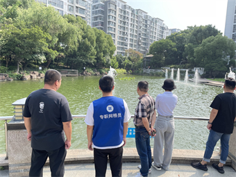 目前,小区投入使用已有十余年,长时间的投入使用,使得中心湖里淤泥堆积,加上飘落湖里的落叶,湖水不再清澈,每逢夏季湖面布满绿藻且有异味发出,光靠人工打捞已经无法解决根本问题,最好的办法只能彻底更换湖水。社区网格员在日常巡查中,多次接到居民反馈。社区工作人员在了解情况后,及时与物业、业委会沟通。今年正好小区新业主委员会成立,针对困扰小区多时的一大难题,业主委员会当机立断决定牵头整治中心湖的环境卫生,联合物业对中心湖进行整顿。整顿期间社区时刻关心施工进度,将中心湖整治工作作为网格巡查重点,并提醒工人们施工时注意安全及秩序。