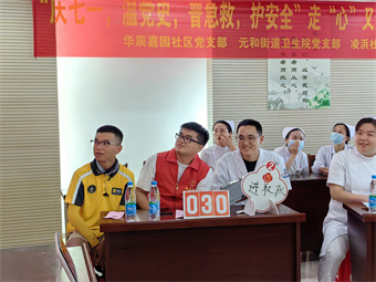 为持续推进党史学习教育走深走实,学习贯彻习近平总书记关于健康中国重要论述,不断增强群众应急救护知识,6月28日,元和街道卫生院党支部协同华辰嘉园社区党支部、凌滨社区党委、元和之春社区党总支联合开展“庆七一,温党史,普急救,护安全 走‘心’又走‘新’”综合知识竞赛。