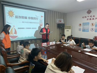为进一步提高辖区青少年防范各类社会诈骗的意识,预防与减少社会诈骗案件的发生,共护网络安全。日前,相城高新区(元和街道)娄北社区党委、团总支、关工委携手峰汇园社区、水韵花都社区、安元佳苑社区,依托“苏州市青少年暑托班”,组织开展“反诈防骗 你我同行” ——青少年反诈骗宣传教育活动,向青少年普及反诈骗知识和法律常识,帮助其识破电信网络诈骗骗局,有效筑牢青少年网络安全防线。