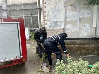 7月10日上午,面临短时间的强降雨,庆元家园社区党总支坚持党建引领,以“党建带团建”工作模式,充分发挥党组织战斗堡垒作用和党员先锋模范作用,多措并举做好极端天气应对工作,筑牢防汛“安全线”,确保居民生命财产安全。