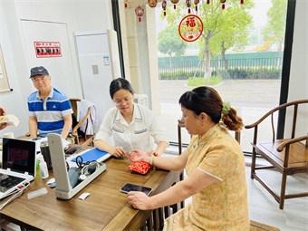 “医生,最近我总是感到头晕脑胀的,您帮我把个脉看看是什么情况。” 在现场,医生们贴心地为居民量血压、问诊、把脉、艾灸,并耐心解答前来就诊居民的各种问题,对其健康症状进行相关的讲解并给予饮食建议。此外,医生们也向居民派送了惠民健康宣传页,并手把手教大家认穴位、找穴位,专业推拿师还为每一位前来参与义诊的居民进行推拿服务。参加活动的居民们边听边学边请教,现场气氛格外活跃,大家纷纷表示:“像我们上年纪了,去一趟医院不容易,现在在社区活动中心就可以面对面地咨询医生,真是太方便了,社区解决了我们老年人出门不便的大难题!”