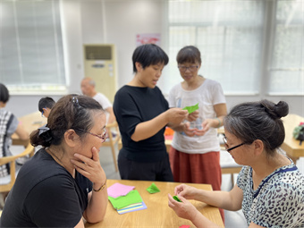 参与活动的金建军阿姨说道:“我一定要做出来!”经过反复几遍操作,她终于像个孩子一样开心地大喊“我挑战成功了”,在接下来的活动中越做越顺手,越做越迅速。还有另一位阿姨,带着自己家的小孙子也来一起参与。