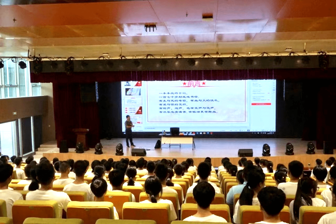 在苏州大学实验学校,讲师金瑞良分享自身军旅故事,带领高一新生回到硝烟弥漫的岁月,共同感受艰苦卓绝的战斗历程,勉励同学们磨炼钢铁意志,锤炼过硬作风,传承精神火种。