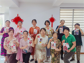 进入活动室,桌上五颜六色的干花制作材料瞬间吸引了大家的目光。志愿者以幽默风趣的方式讲解教师节的来历和意义,大家听得津津有味,对教师节也有了进一步的了解。随后志愿者将活动材料分发给大家,洁白的贺卡纸、精美喷香的干花。大家拿到材料后,开始细细研究起来。此时她们的脑袋里已经有了主意,纷纷挑选起自己喜欢的干花,在卡纸上搭配出各种颜色和款式。时间“滴答滴答”过去了,居民们沉浸在自己的世界里,她们发挥自己丰富的想象力和创造力,剪剪贴贴,原本单调的卡纸上渐渐丰富了起来,浪漫的满天星,热情的向日葵......凑成了一张张立体的贺卡。“虽然我一把年纪了,但我还在读老年大学,我要把我今天做的贺卡送给我的老师,祝我的老师节日快乐,幸福安康。”居民吴阿姨深情地说道。