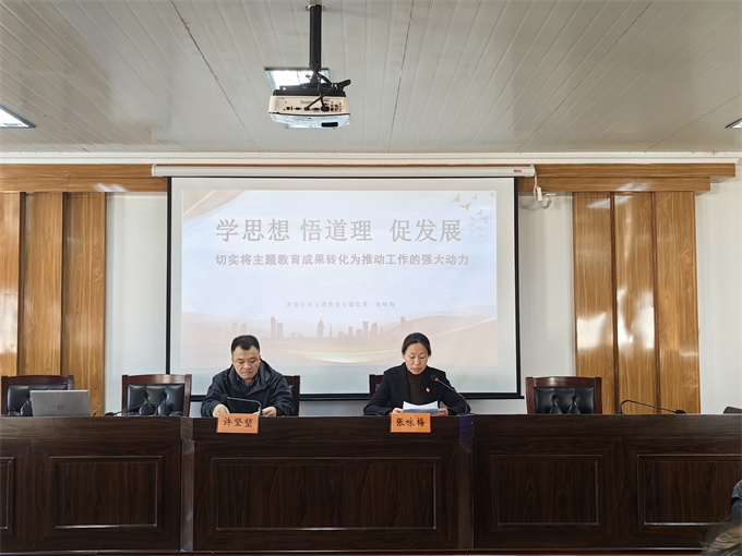 香溪社区党委严格按照主题党日活动要求,深入学习贯彻中央和省、市主题教育工作推进会精神。11月24日上午,全体党员集体学习了《蔡奇:在学习贯彻习近平新时代中国特色社会主义思想主题教育第一批总结暨第二批部署会议上的讲话》精神。社区党委书记张咏梅以党课形式,围绕“筑牢政治之魂、厚植党性之基、开创发展新篇”三个方面谈谈个人体会,与党员共同交流探讨、相互学习提高,切实将主题教育成果转化为推动工作的强大动力。