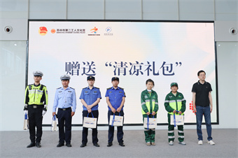 现场,相高新控股集团为交警、城管、环卫等户外执法人员代表赠送清凉礼包,为长期奋斗、坚守在一线的户外工作者送去清凉、敬意和关怀。由相高新控股集团捐赠的一批“爱心矿泉水”也在现场交付,将放置在苏州市第二工人文化宫一楼大厅的“文明冰箱”中,即日起至8月中旬为户外工作者及新业态群体免费提供矿泉水。后续相城高新区(元和街道)也将邀请更多文明单位及爱心企业加入,延续这场爱心接力。