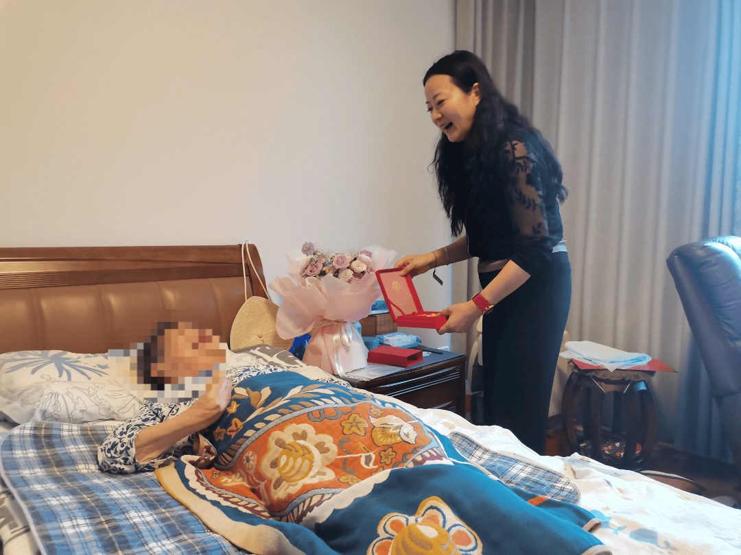 0在中国共产党成立103周年即将到来之际,吴中区退役军人事务局党组成员、副局长王丽琴专程上门,为长期因病卧床的军休干部王姣娥颁发“光荣在党50年”纪念章,以此表达对老党员的崇高敬意和深情关怀。