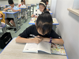 趣味阅读课上,老师带领大家读课外读物,《爱的教育》、《一千零一夜》、《西游记》……孩子们徜徉在书海中,享受阅读乐趣。读书后结束,孩子们还要分享读后感。孩子们在阅读的过程中,锻炼独立思考能力,慢慢爱上阅读,实现心与心的交流。