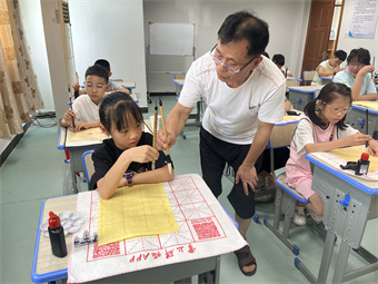 书法课上,临湖书法协会的老师向孩子们强调书写的正确姿势,孩子们在老师的指导下学习毛笔字的基础笔画和运笔方法,他们在一横一竖一撇一捺中感受到了中华民族先辈造字的智慧,更收获了很多软笔书法的书写规则及实用技巧。