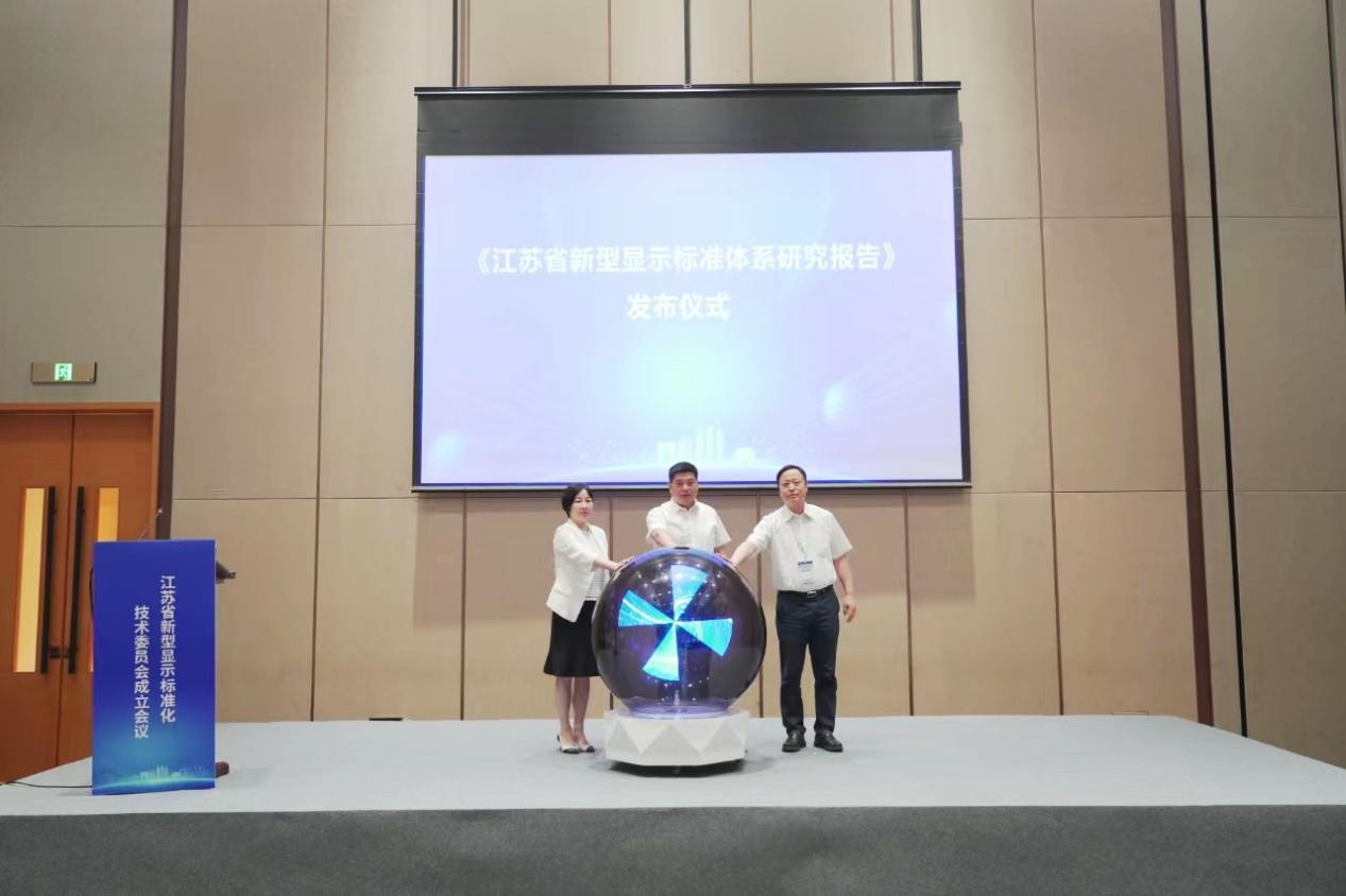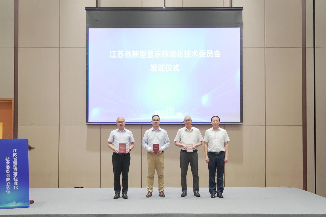会上,宣读了江苏省新型显示标准化技术委员会成立批文,为江苏省新型显示标准化技术委员会揭牌;为标委会主任委员授印和颁发证书;标委会主任委员王保平代表发言;发布了《江苏省新型显示标准体系研究报告》。