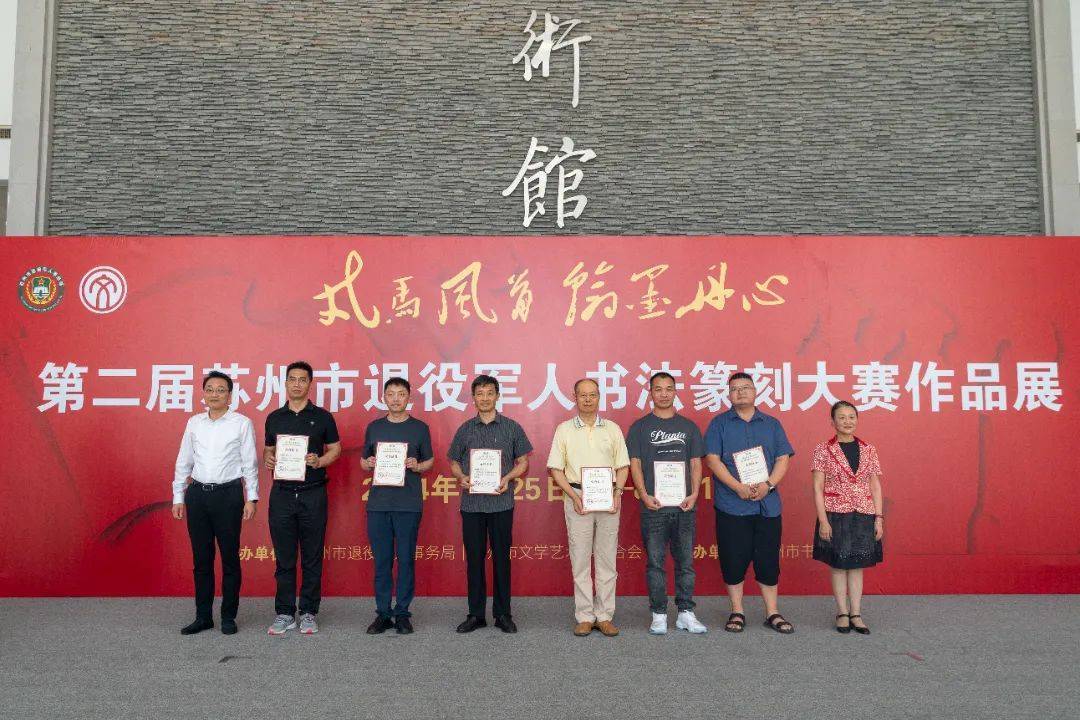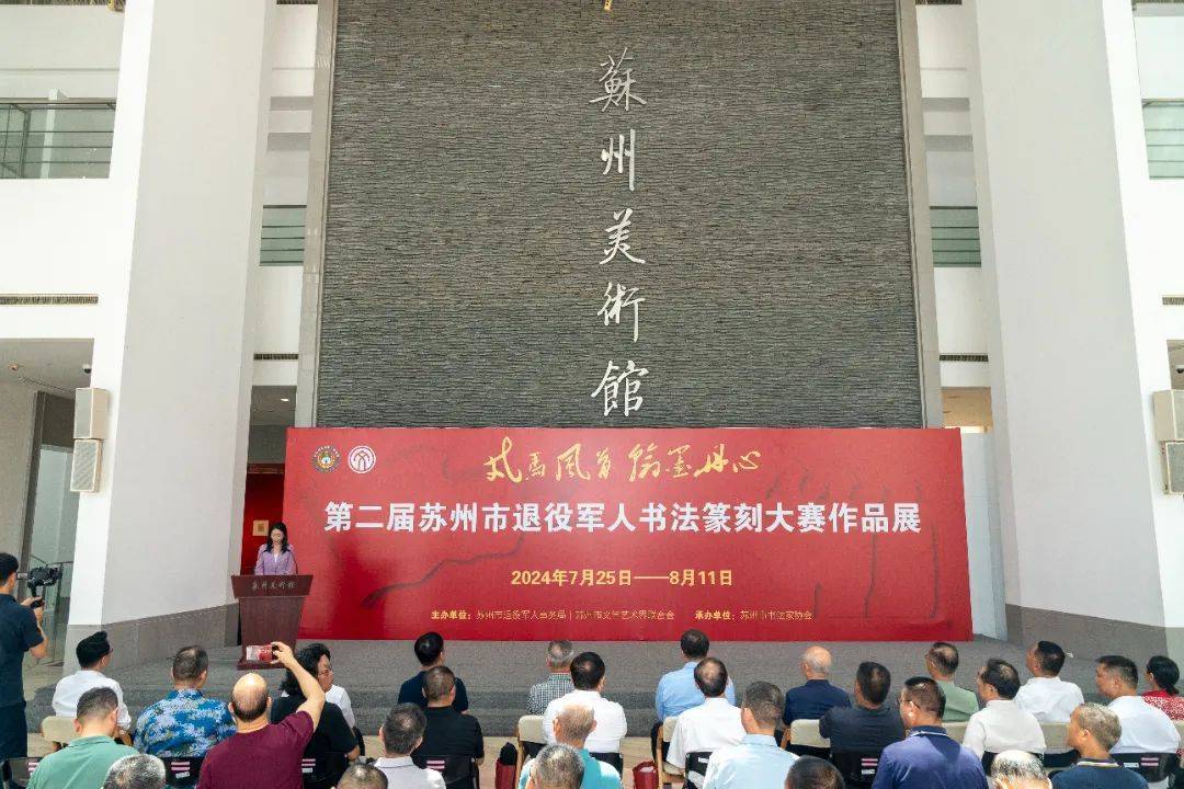 为庆祝中华人民共和国成立75周年、中国人民解放军建军97周年,充分展现新时代退役军人的风采才华,7月25日,由苏州市退役军人事务局、苏州市文学艺术界联合会共同举办,苏州市书法家协会承办的“戎马风骨 翰墨丹心”第二届苏州市退役军人书法篆刻大赛作品展在苏州美术馆开幕。
